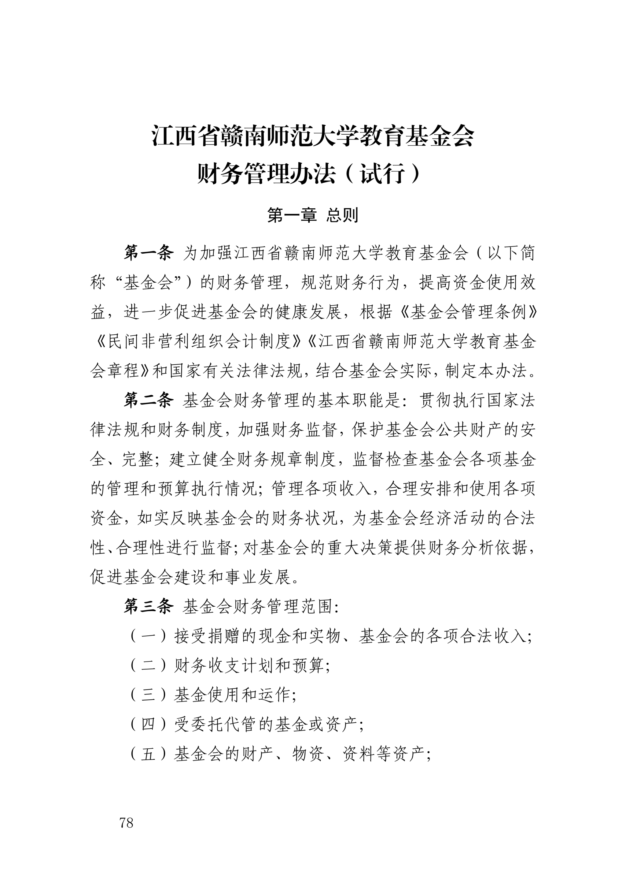 江西省赣南师范大学教育基金会财务管理办法(试行)